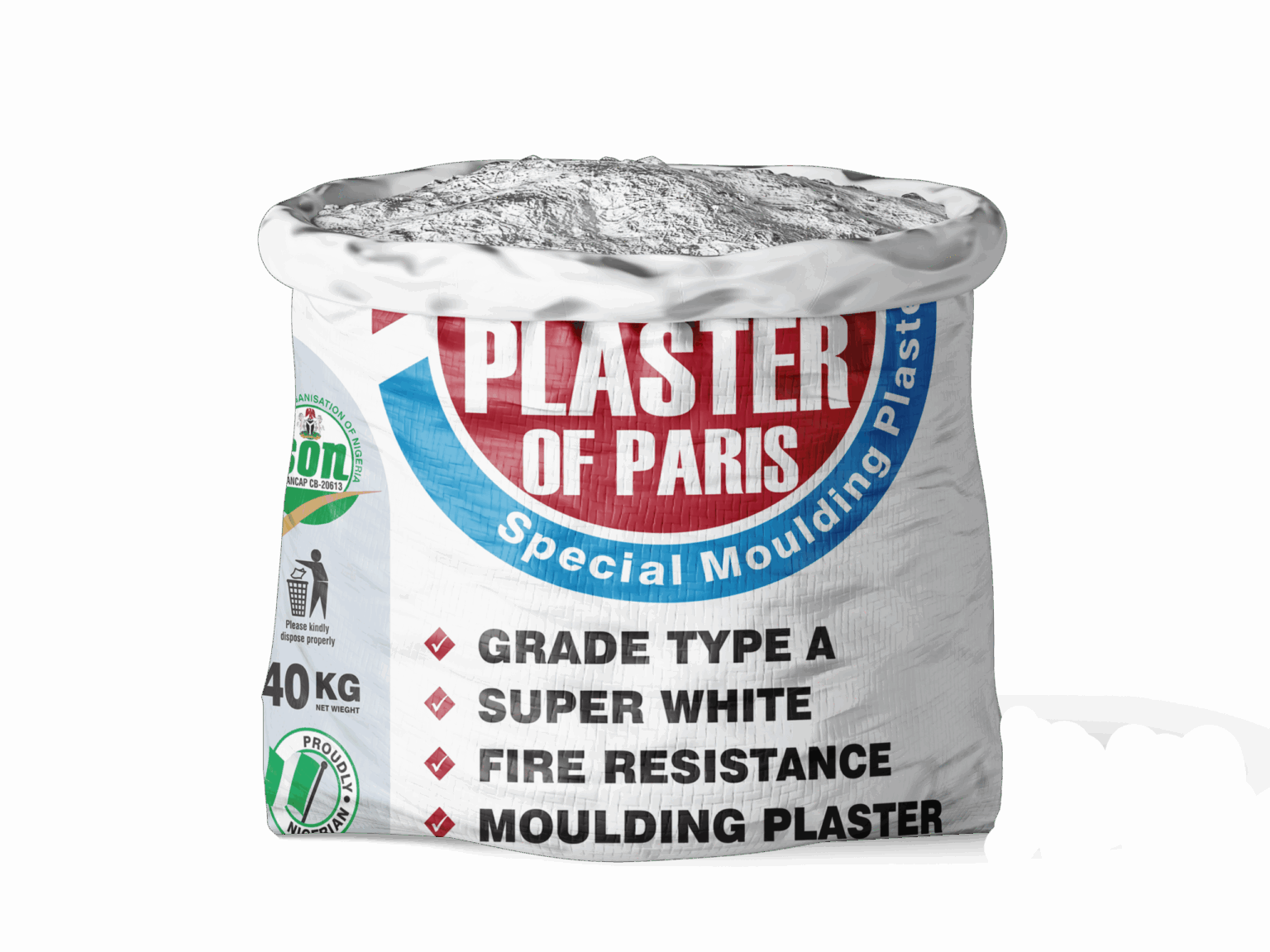 BUA Gypsum Plaster (POP / Gypsum Powder) packaged in robust 40 kg bags, ready for on-site mixing and application.